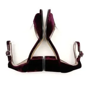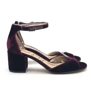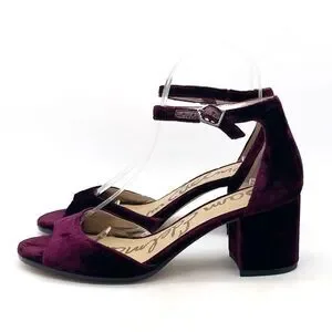 Sam Edelman Susie Velvet Block Heel Ankle Strap Sandals Burgundy Maroon Size 6.5