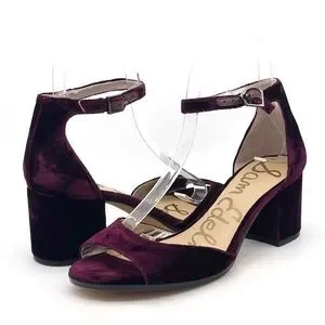 Rich, elegant and timeless — these Sam Edelman “Susie” ankle strap sandals feature a plush velvet finish and block heel design, perfect for dressy occasions, weddings, or holiday parties. The deep burgundy hue adds a luxe touch to any look.