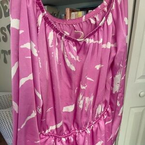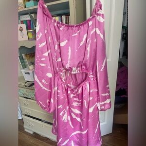 Have a little flirty fun in this adorable pink off the shoulder dress this Spring! Dress has an elastic waist and is silky soft!
