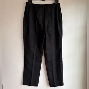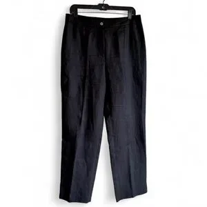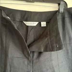 Katherine Kelly Irish Linen black dress pants. Straight leg style with a flat front, zip and button opening. 100% linen.