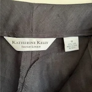 Katherine Kelly Irish Linen Black Straight Leg Trousers Size 14