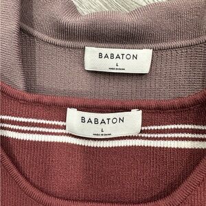 Babaton Cropped Sculpt Knit Polo & Striped Tank Duo - Mauve & Wine Large