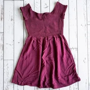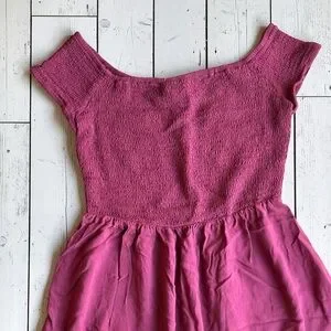 Mossimo Smocked Babydoll Dress Burgundy Cap Sleeve Size Medium