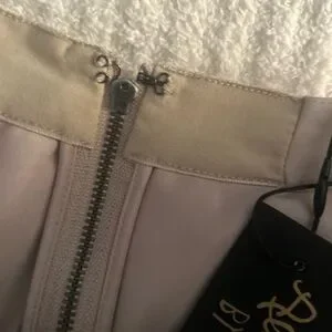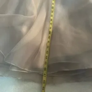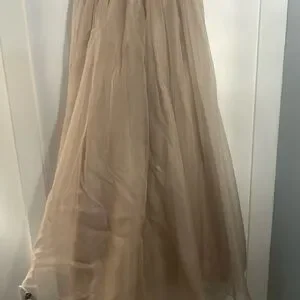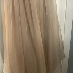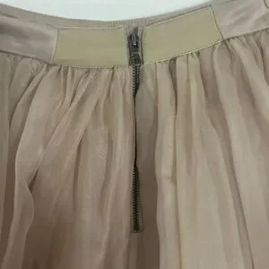 Alice + Olivia's voluminous 'Abella' maxi skirt is crafted from double layers of wispy silk-organza and lined in satin for an added fluidity. Nude/ dusty pink color. Has kind of a dusty look. Satin underneath is heavy feel. Zipper and eye hook on back.