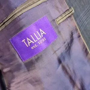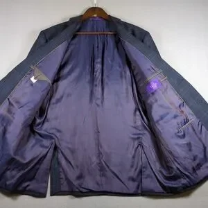 Tallia Mens 46R Wool Blazer Blue Windowpane Plaid Sport Coat Single Breasted