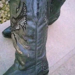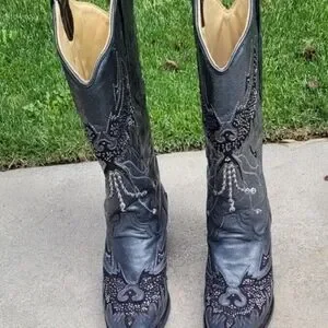 Corral Eagle Rhinestone and Stud Cut-Out leather Black/ Silver Cowgirl size 9.5