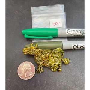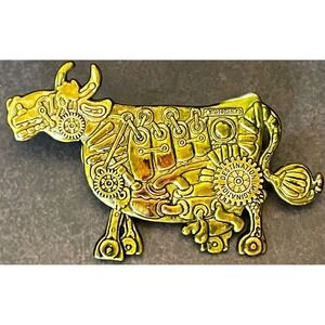 Destination Imagination Wisconsin Steampunk Mechanical Cow Lapel Pin Green Tone