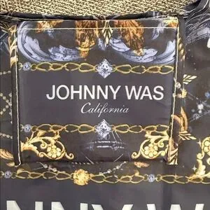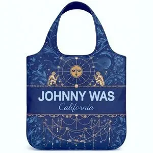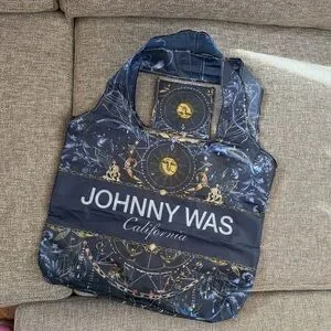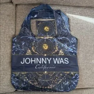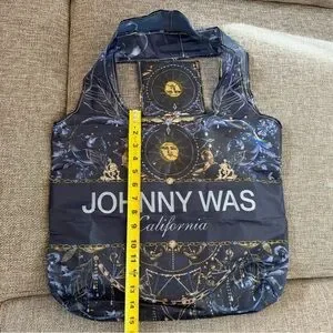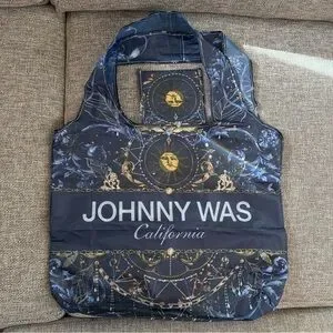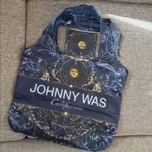 New without tags Johnny Was California Reusable Shopping Bag Tote Blue Gold Moon Packable New Bohemian Boho