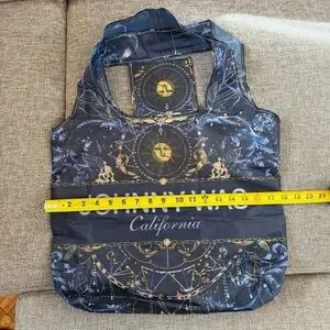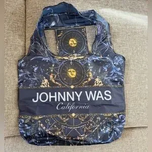 Johnny Was California Reusable Shopping Bag Tote Blue Gold Moon Packable New