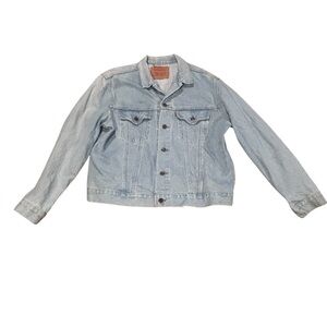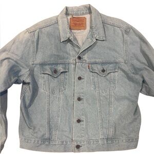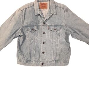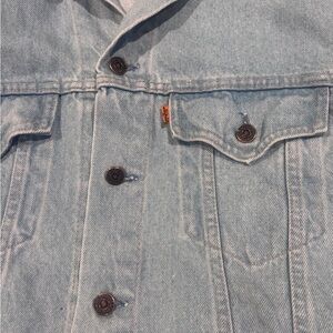 Vintage Levi’s Orange Tab Denim Trucker Jacket Light Wash Leather Patch 80s 90s