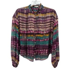 Ramy Brook Vance Button Up Striped Top Womens Large Ballon Sleeve Feminine