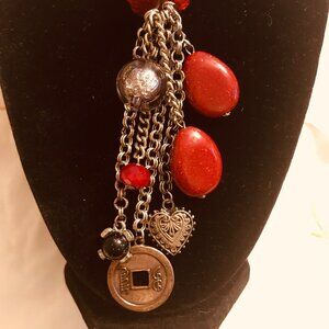 This Asian-Inspired Necklace features a 22" Cord Necklace and a 7" drop-down Charm Pendant. All are in good condition.