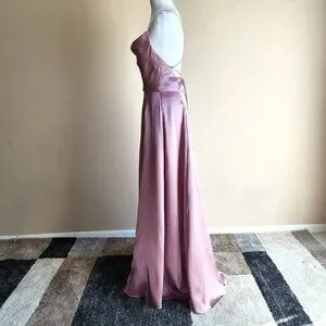 Galina Signature Pink Quartz Satin Long Cowl Neck Dress Size 4 NWT