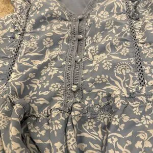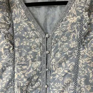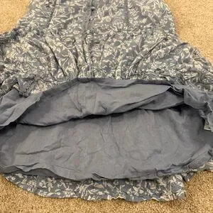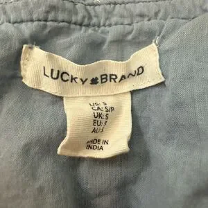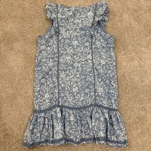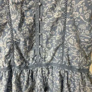 Lucky Brand Lace Trim Ruffle Shoulder Flounce Floral Mini Dress Blue White Small