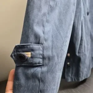 Elevate your wardrobe with this elegant blue trench coat. Perfect for adding a touch of sophistication to any outfit.