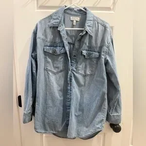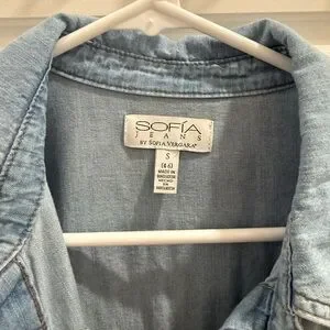 NWOT Sofia Vergara denim button-down shirt. It’s a size small but runs on the bigger size (more like a boyfriend fit). Denim is nice and soft. Never worn. Smoke-free home.