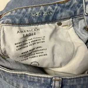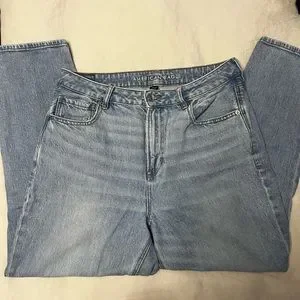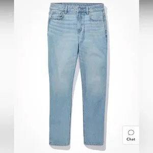 Classic straight-leg jeans from American Eagle Outfitters. Light blue wash with subtle fading. Five-pocket style with button fly. Clean hem and timeless silhouette.