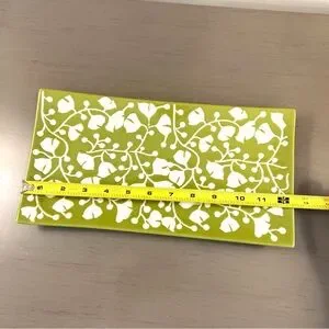 Crate & Barrel Aremi Floral Serving Platter Tray Plate Green White 12.5x6.5”