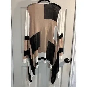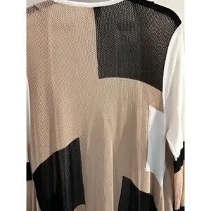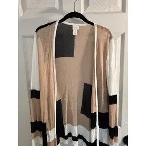 Chicos Travelers Collection Cardigan Black White Chevron Mesh Open Front Size 2