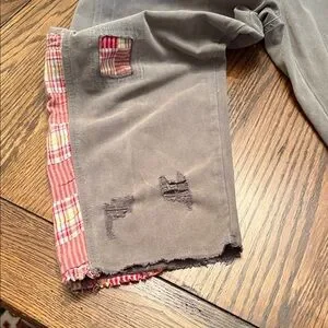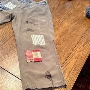 POL Patchwork Distressed Cotton Cropped Pants Boho Lagenlook Size M