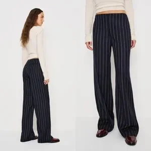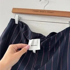REFORMATION NEW Vida Low Rise Pants in Navy Red Stripe 8