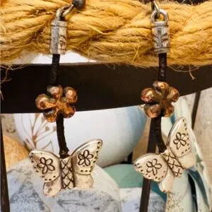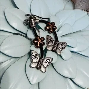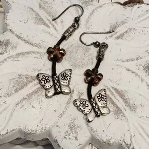 Elegant silver and copper butterfly earrings perfect for adding a whimsical touch to any outfit. These charming accessories are ideal for everyday wear or special occasions.