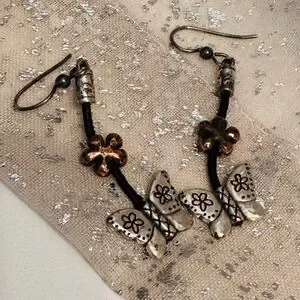 Brighton Lariat Cord Copper Bird Butterfly Earrings
