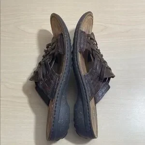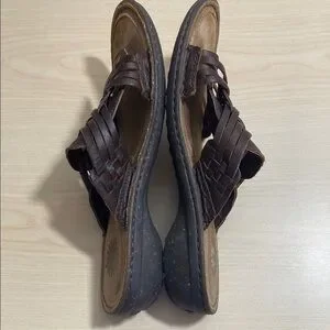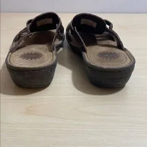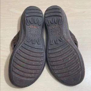 UGG Keala Brown Leather Slide on Sandals with Woven Design