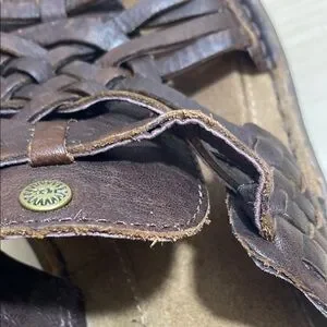 Experience the perfect blend of style and comfort with UGG's brown sandals. Crafted with a woven design, these leather sandals offer a chic look while ensuring a comfortable fit. Ideal for casual outings, they embody the quality and elegance synonymous with the UGG brand.