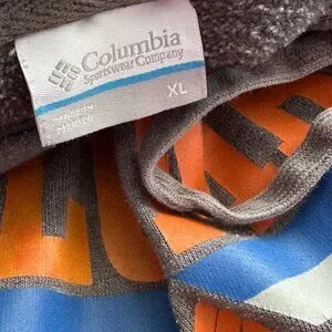 Bold orange Columbia chest graphic