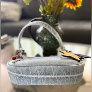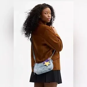 Coach Light Blue Denim Shoulder Bag with Gold Hardware and Purple Tag