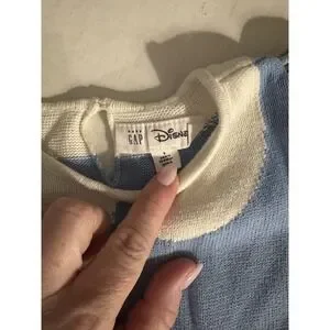 Baby Gap x Disney Snow White sweater dress captures the iconic princess look with a charming knit bodice and a voluminous tulle skirt. The light blue knit top features a white Peter Pan collar detail and puffed sleeves with red and yellow accents, while the creamy yellow tulle skirt adds a whimsical, princess-inspired finish. Designed with a button loop closure at the back neck for easy dressing, this soft knit dress is perfect for costume play, parties, or everyday magic.