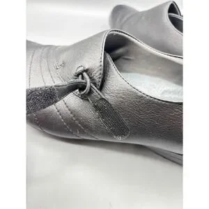 Classic black leather shoes offering exceptional comfort and style. These shoes feature a smooth leather upper with elegant stitched detailing across the vamp. A stylish strap with a decorative knot and adjustable hook-and-loop closure adds a secure and customizable fit.