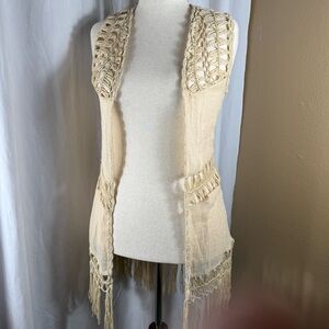 Cream Crochet Fringe Vest Size M Boho Chic Festival Fashion Crochet Fringe Rue21