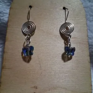 These elegant silver earrings feature a charming butterfly design, perfect for adding a touch of whimsy to any outfit. The intricate detailing and shimmering finish make them a standout accessory.