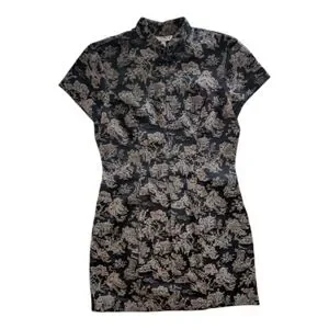 Vintage Cheongsam Qipao Mini Zippered Dress Black Gold Women's Small