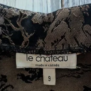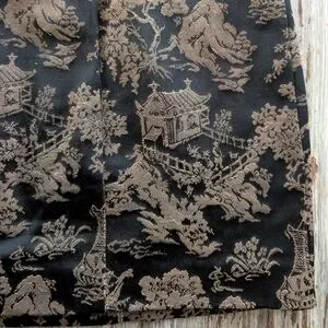 Beautiful intricate black and gold in an Asian inspired jacquard print. Featuring detailed top knot closure, front zipper that runs a good length of the dress and cap sleeves.