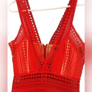 Crafted from a modern, structured lace, this feminine and chic silhouette is guaranteed to turn heads! Featuring a playful voluminous flounce mini skirt and a fitted bodice with plunging neckline, this vibrant lace dress by Thurley is perfect to rent for an upcoming cocktail party or night out with friends!
