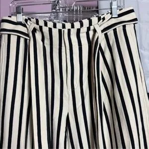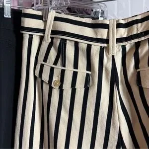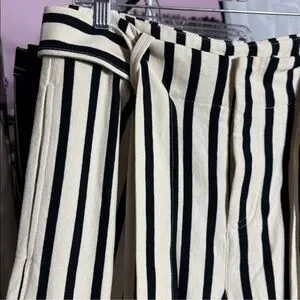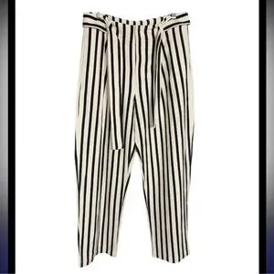 Stylish striped trousers with a bow detail. Perfect for a modern look.