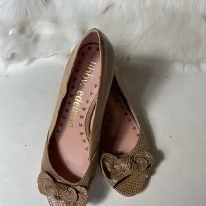 Libby Edelman taupe & brown snake skin print peep toe toe wedge shoes size 8.5