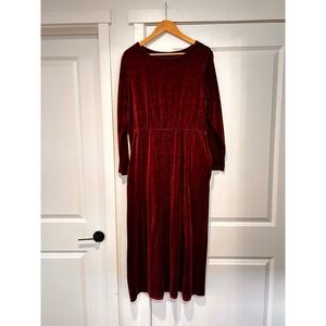VTG Vermont Country Store Burgundy Velvet Burnout Floral Midi Dress Large Modest