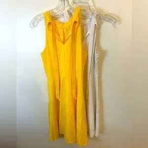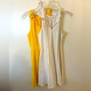 2 Sundresses Yellow & White Sleeveless Dress; Tie in back. Size M
