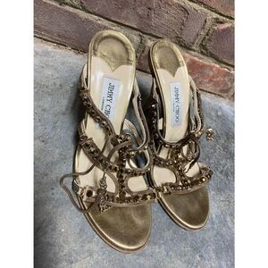 Jimmy Choo Gold Metallic Leather And Jewel Embellished Strappy Sandals