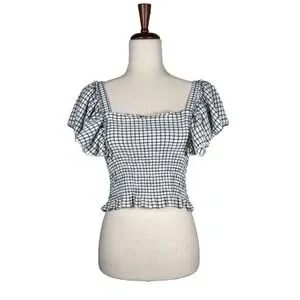 Maeve Anthropologie Shirt Womens Small Checkered Ruffle Smocked Cottagecore