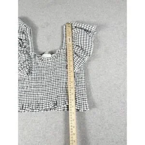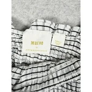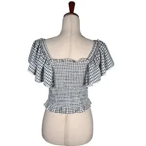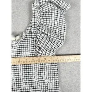 Maeve by Anthropologie Shirt Womens Small Black White Checkered Ruffle Smocked Top