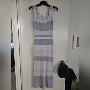 Barefoot Dreams Cozychic Ultra Lite Striped Maxi Dress - Heathered Gray - Size S