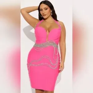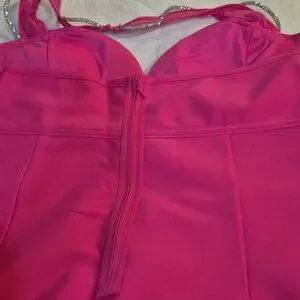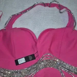 Fashion Nova Strapless Pink Dress with Silver Details