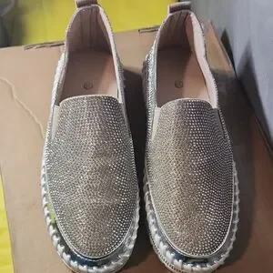 Step out in style with these elegant women's slip-on shoes, adorned with sparkling rhinestones. Perfect for adding a touch of glamour to any outfit.