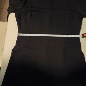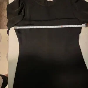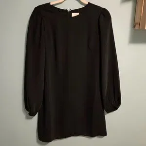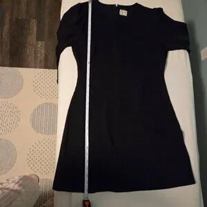 This is a crew-neck mini dress with puff sleeves. It's versatile black dress