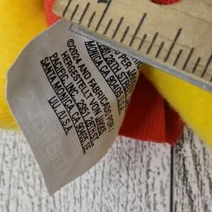 Adorable yellow and red stuffed toy perfect for kids. Soft and cuddly, ideal for playtime and snuggles.